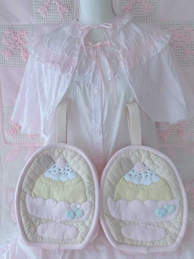 ♡Ice Cream Body Bag【Anniversary Design 】♡ この度、Ribbon2周年を迎えました♡アニバーサリーシリーズとしてデザインしたイラストから作品を製作致しました♪ アクリルテープを伸ばして頂くとショルダーバックのようにもお持ち頂けます♡// 【こちらはBody Bagの販売ページです。それ以外ディスプレイとなります】 ♡サイズ♡(㎝) ☆タテ 41 ☆ヨコ 24 ☆サイド 8.5 ☆アクリルテープ(補強布含む) ・長 118 ・短 90 ※製作上サイズ等、若干誤差があります。ご理解の上ご購入をお願いいたします。 ☆ご注意☆ ・1〜7枚目の画像が該当アイテムとなります。8枚目以降は共通の画像をしようしております。 ・キルティング生地について、材料調達時点・作品製作過程で糸のゆるみ(または糸ほつれ)が起こりやすくなっております。注意をはらい製作しておりますが防ぐ事が困難となります。 ・ご使用中、荷物過多、強く引っ張るなどの行為は破損を引き起こす可能性がございますので注意して頂きますようお願いします。 ・洗濯はおすすめできません。色落ち・変色する可能性があります。また手洗いやクリーニングも同様に十分注意し、自己責任で行うようにして下さい。 ・ハンドメイド商品のため同じ商品でもサイズに多少差があります。 ・ケータイのカメラで撮影しております。実物での発色の仕方・見え方が若干異なる場合がございます。 ・サイズが合わないなどの返品は致しかねます。 ●上記の様な理由でのご返品はお受けしかねます。写真や説明をお読み頂きご理解・ご了承された上でご購入をお願い致します。 ●ご購入のお約束・お取り置きはできません。オンラインショップ先着順になります。ご了承くださいませ。