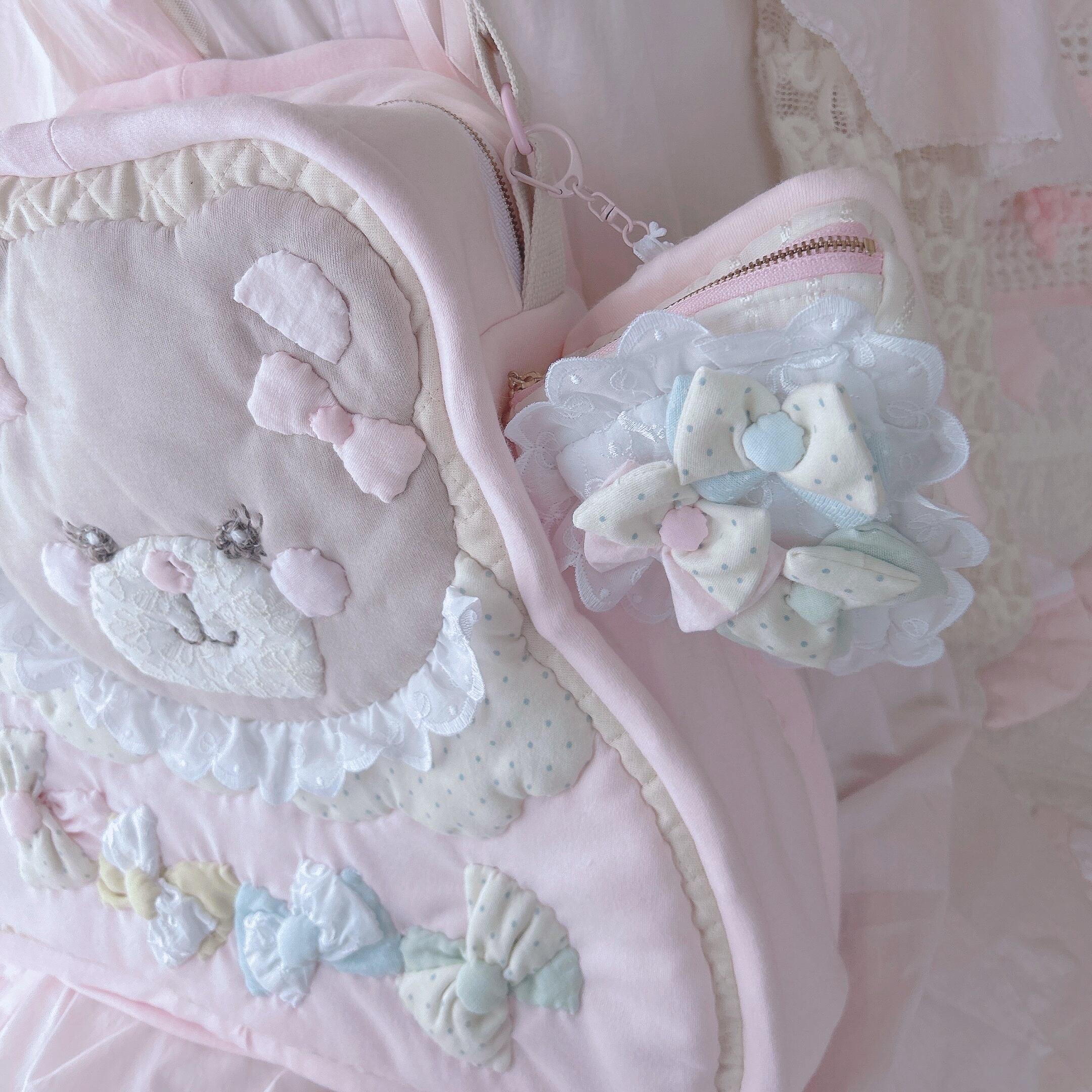 ・キルティング生地について、材料調達時点・作品製作過程で糸のゆるみ(または糸ほつれ)が起こりやすくなっております。注意をはらい製作しておりますが防ぐ事が困難となります。