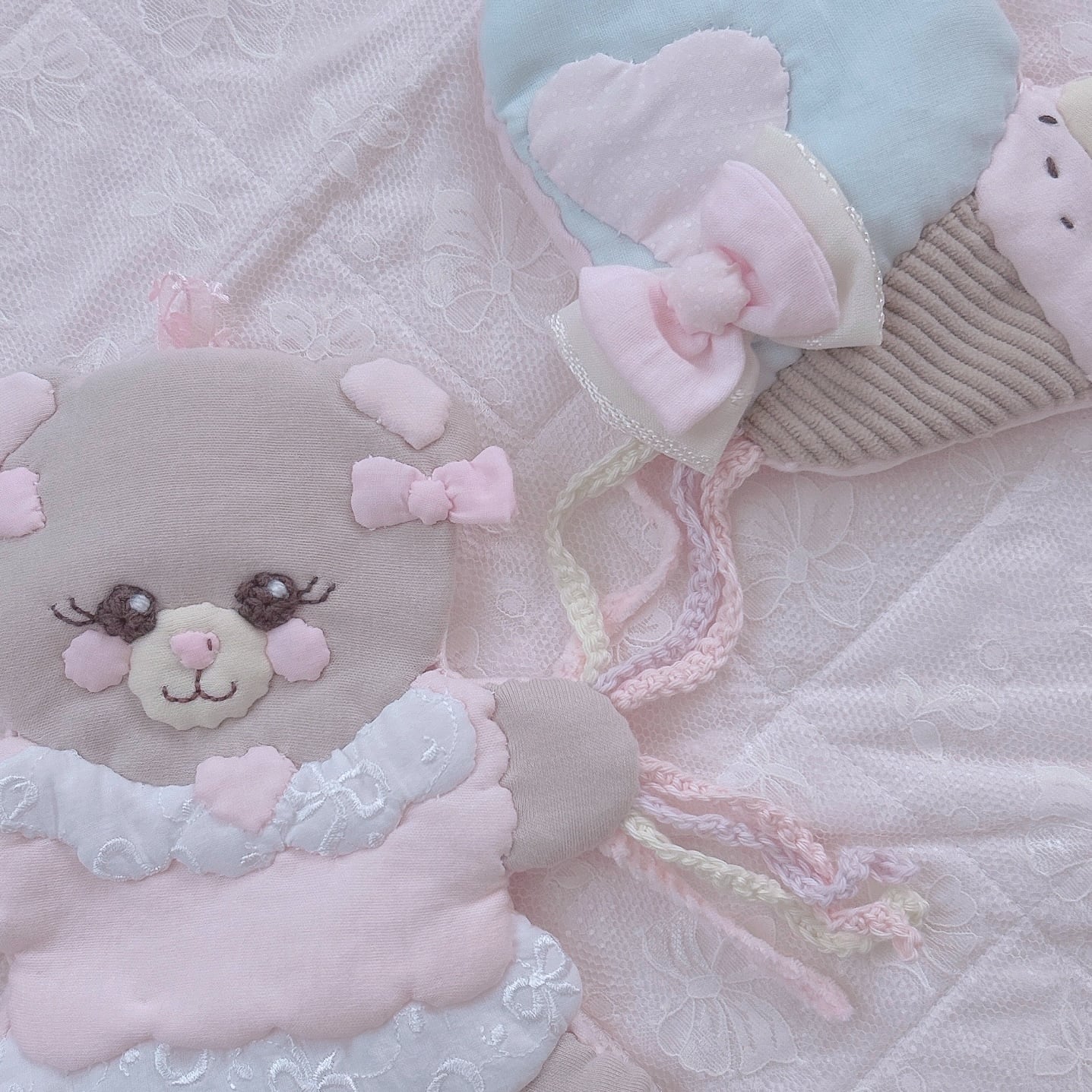 ③くま(ピンクホワイト) 風船(ミズイロ)