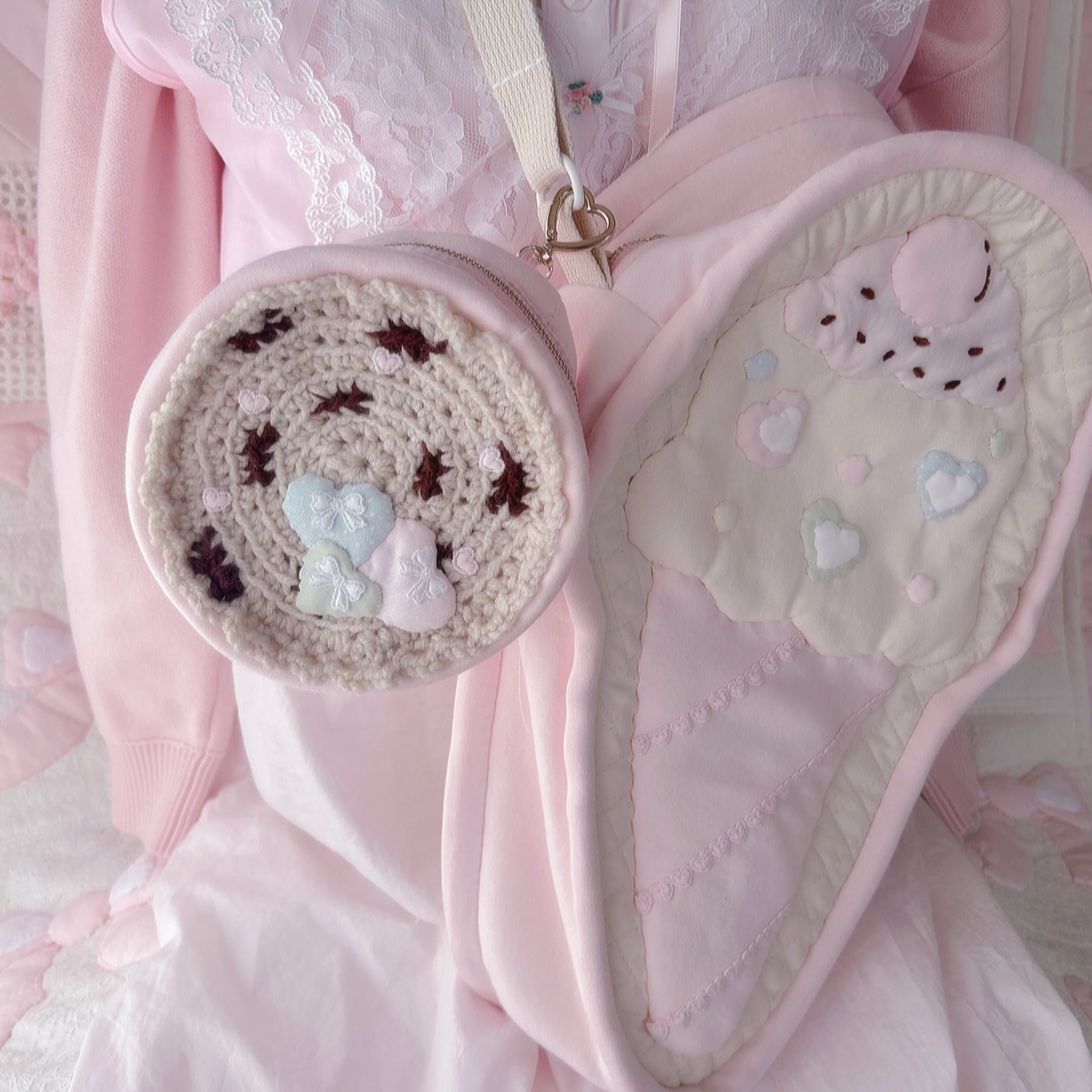 毛糸でできたクッキーモチーフにプチハートがついてかわいいです♡