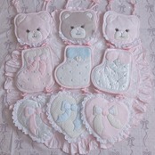 くまちゃんのお顔、くつ下の模様、ハートの中のりぼん、どれも1から細かくパーツ作りをしてかわいいを吹き込みました♡